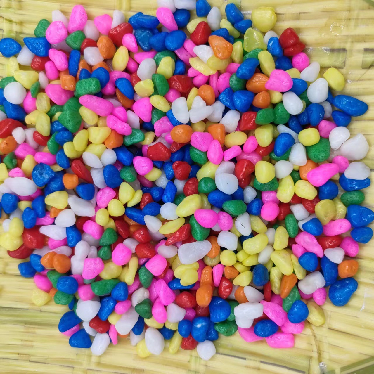 供应染色石子盆栽多肉铺面装饰鱼缸造景五彩石园艺游乐厂专用彩砂
