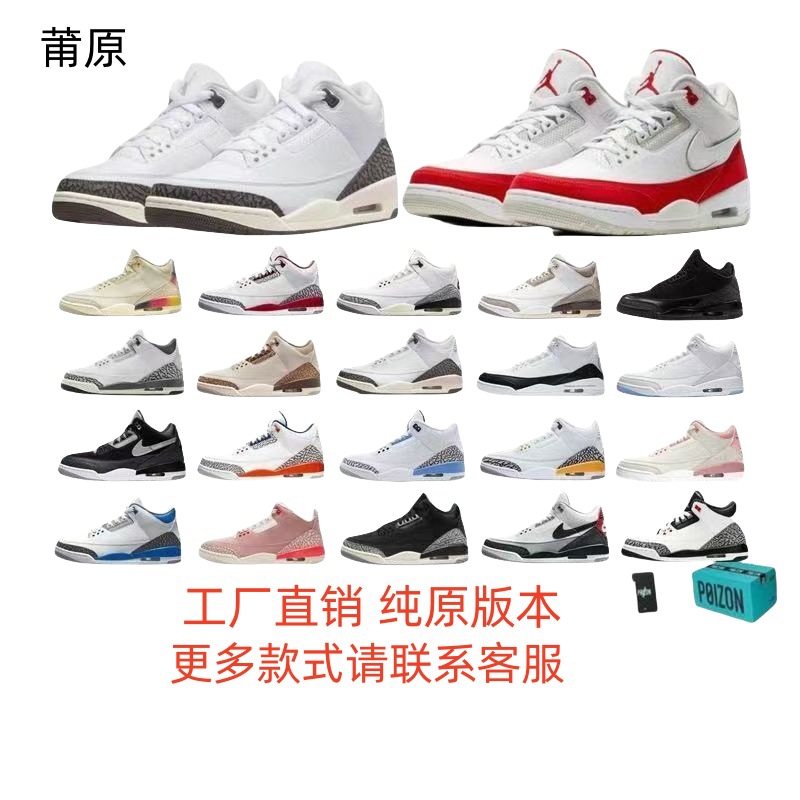 莆田aj3藤原浩白水泥黑武士白猫红雀乔3男女篮球鞋运动休闲鞋