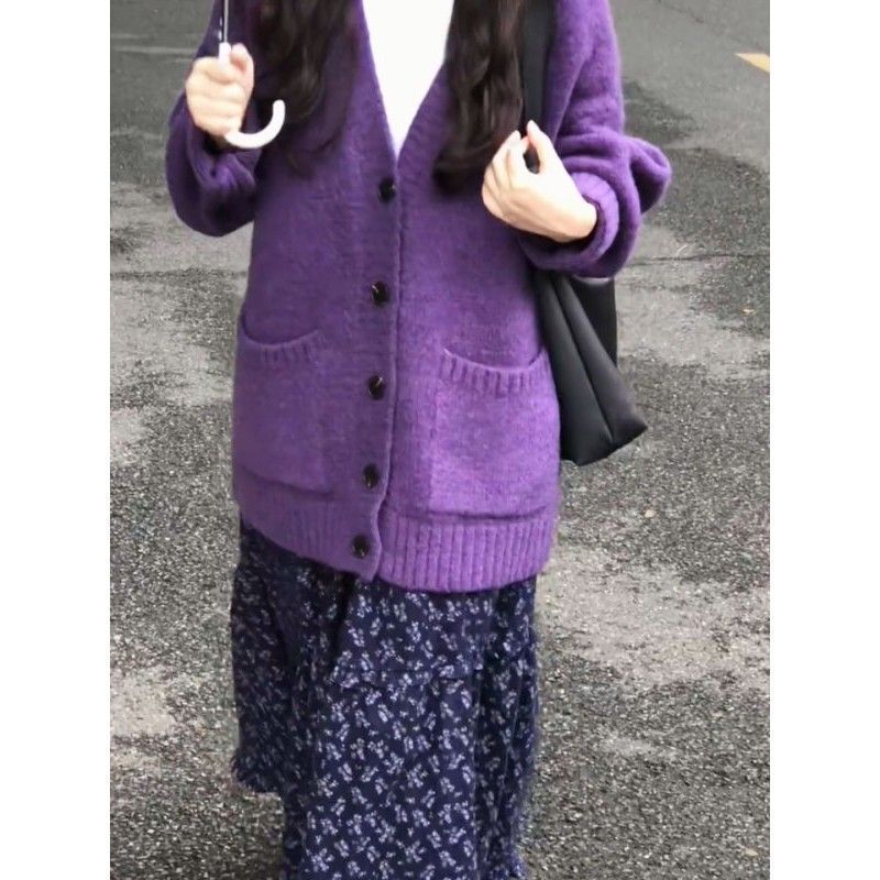 温柔慵懒风时尚套装女秋冬新款宽松毛衣开衫碎花半身裙两件套