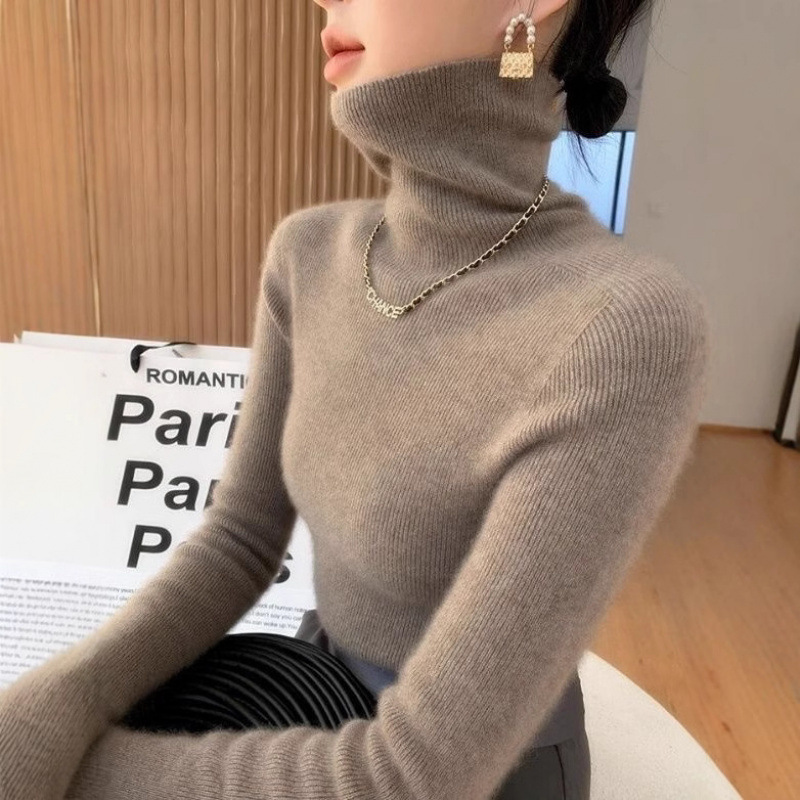 轻奢高档毛衫秋冬新款百搭针织衫堆堆领高领打底毛衣修身加厚绒衫