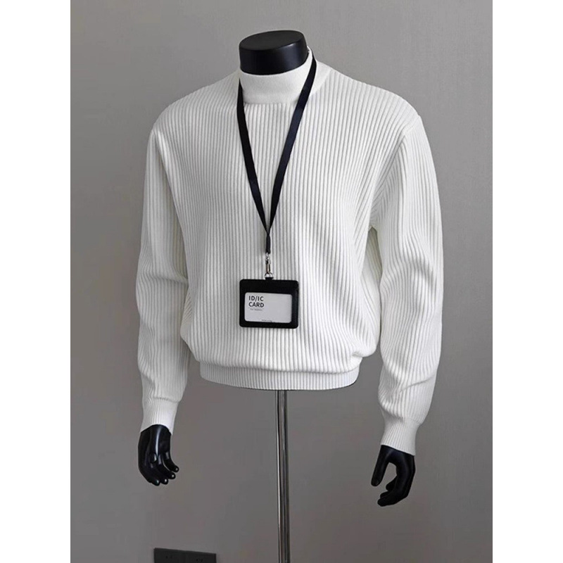 白色坑条纹半高领毛衣男款秋冬慵懒感cleanfit美式正肩针织衫2026