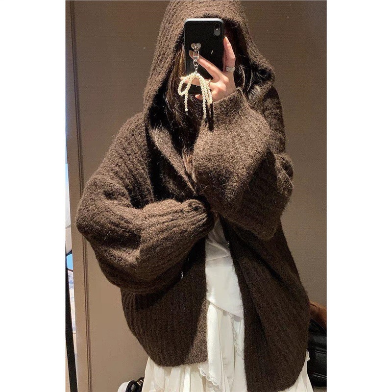秋冬慵懒毛衣连帽外套新款韩系宽松针织2025开衫中长款加厚