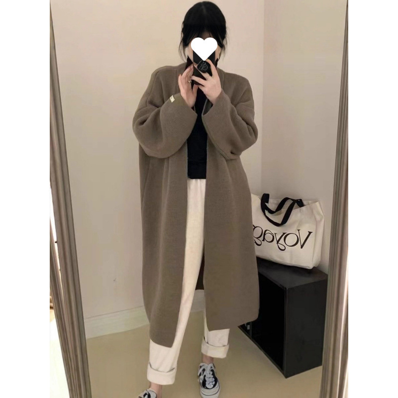 新款中长款过膝加厚针织开衫女纯色慵懒风宽松秋冬季毛衣上衣