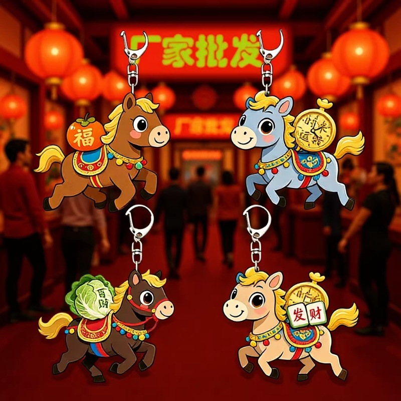 2026年亚克力马年礼品挂件环圈钥匙扣书包挂饰义卖小商品批发