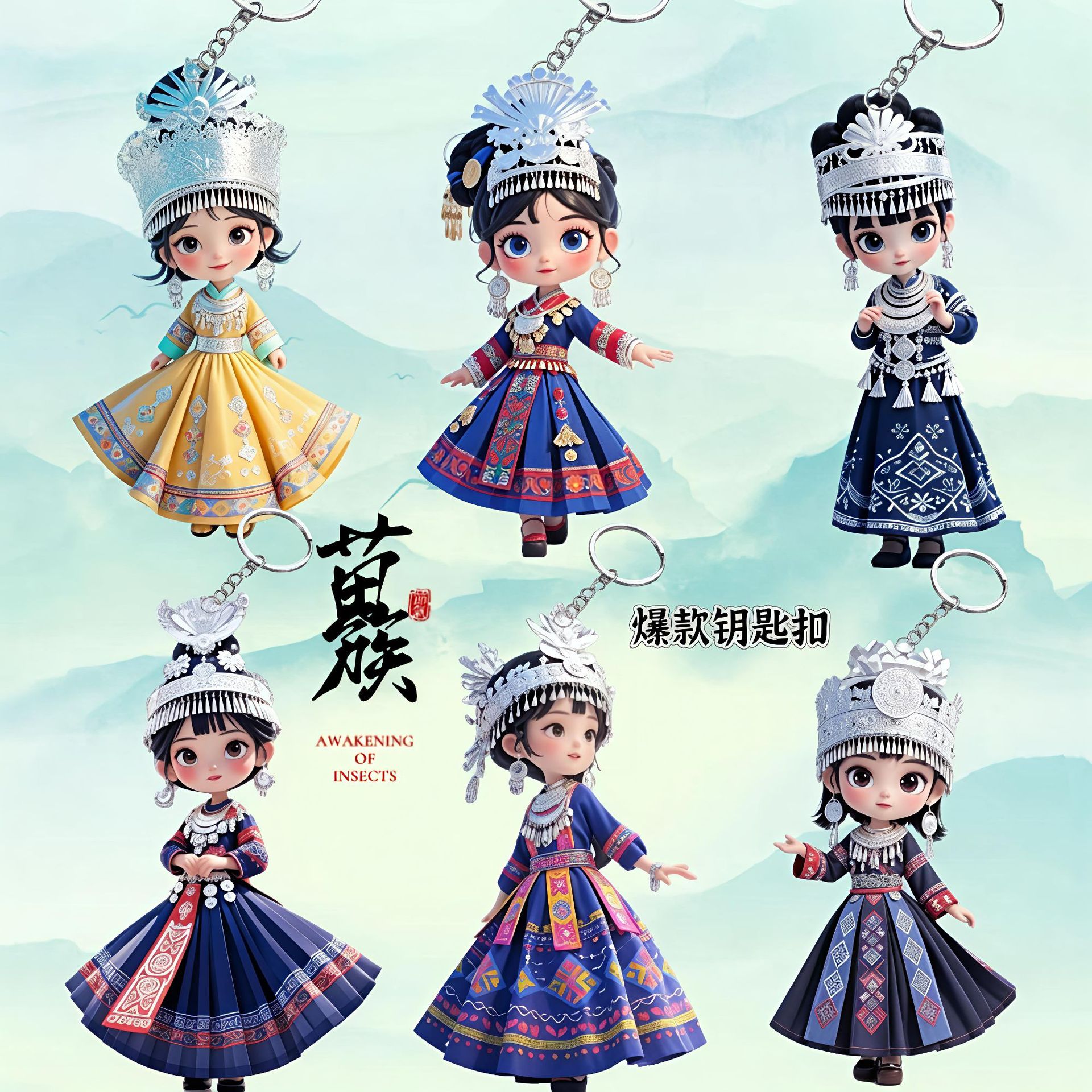 爆款民族风亚克力钥匙扣圈环包包挂件义卖小商品摆摊推荐