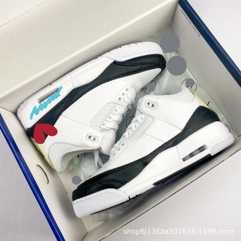 跨境专供莆田鞋AJ3乔3白水泥火焰红气垫防滑男篮球运动鞋潮流