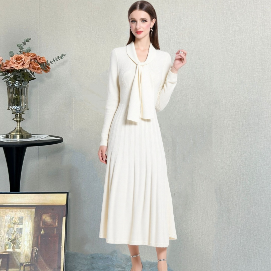 2025跨境欧美独立站秋冬新款法式优雅开衫连衣裙修身显瘦针织女装
