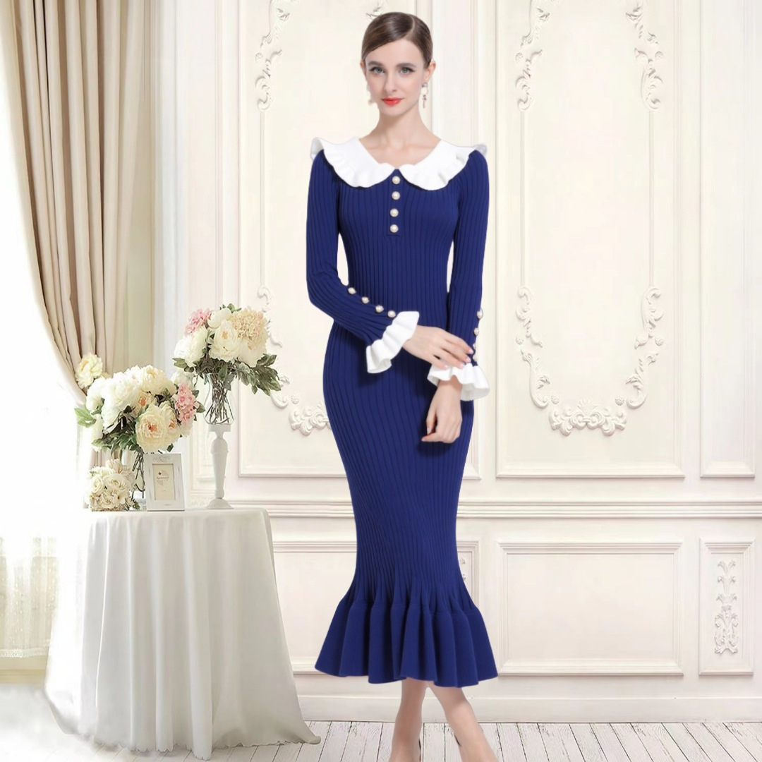 现货外贸跨境欧美针织长袖毛衣连衣裙秋冬季新款修身法式长款裙子