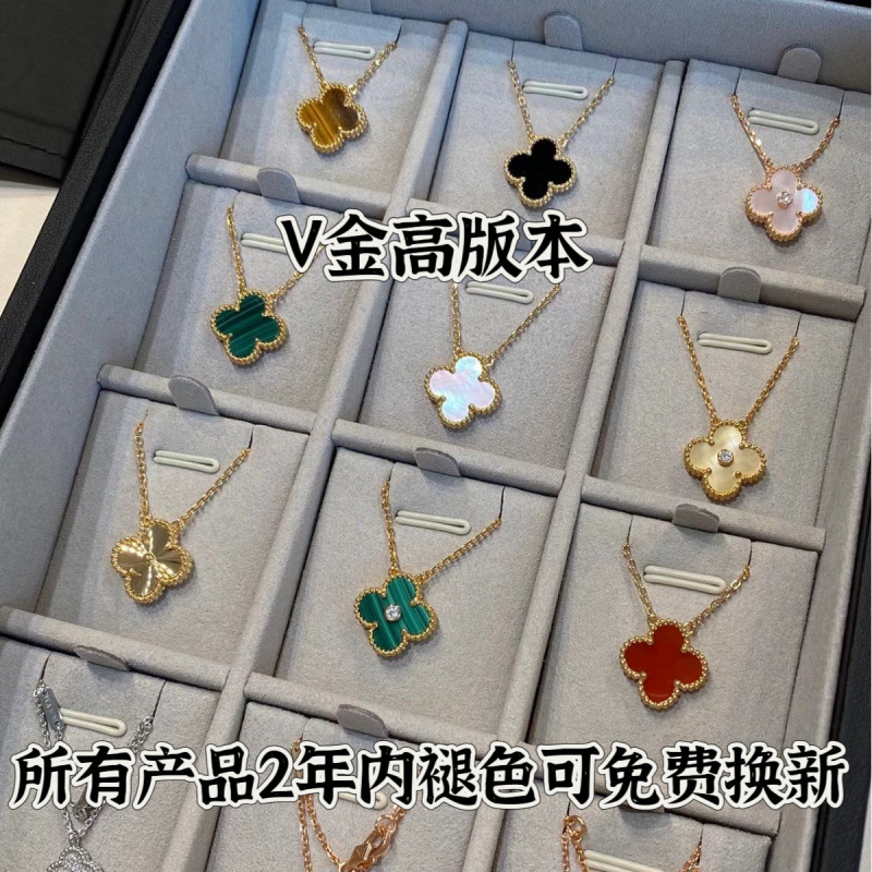 高版本V金四叶草项链镀18K金玫瑰白贝母红玛瑙玉髓虎眼吊坠锁骨链