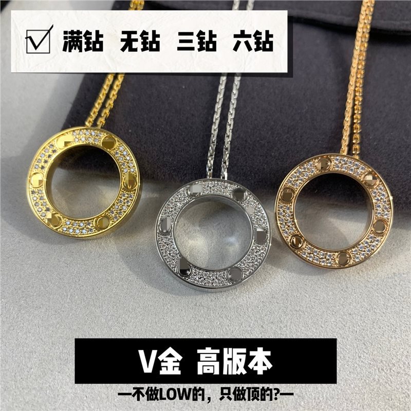 高版本V金love系列项链厚镀18K 镶钻圆饼圆形项链LOVE吊坠锁骨链