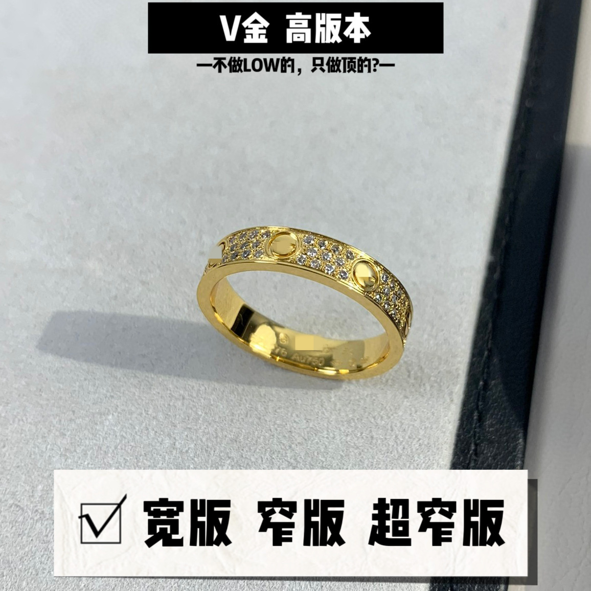 V金高版本厚镀18K咪金宽窄版满天星戒指二排三排钻时尚个性指环