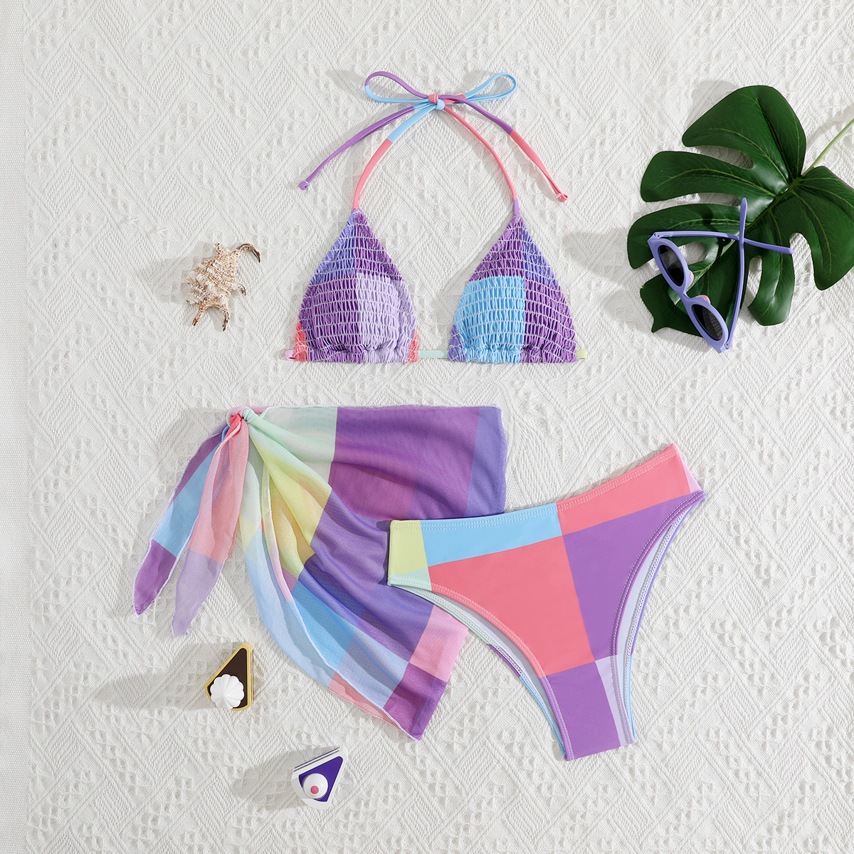 欧美外贸时尚三件套亚马逊泳装批发纯色夏季儿童泳装新款泳衣2024