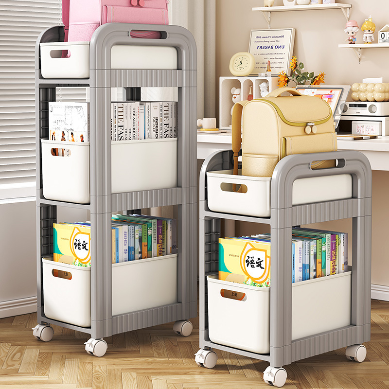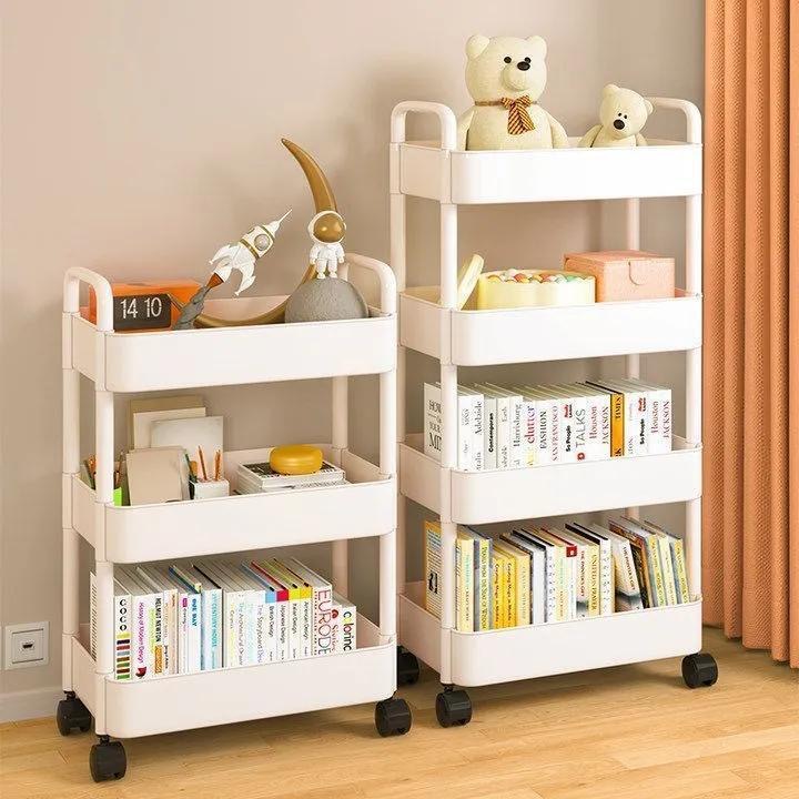 儿童房可移动书本收纳架家用落地多层简易书柜塑料置物架推车跨境
