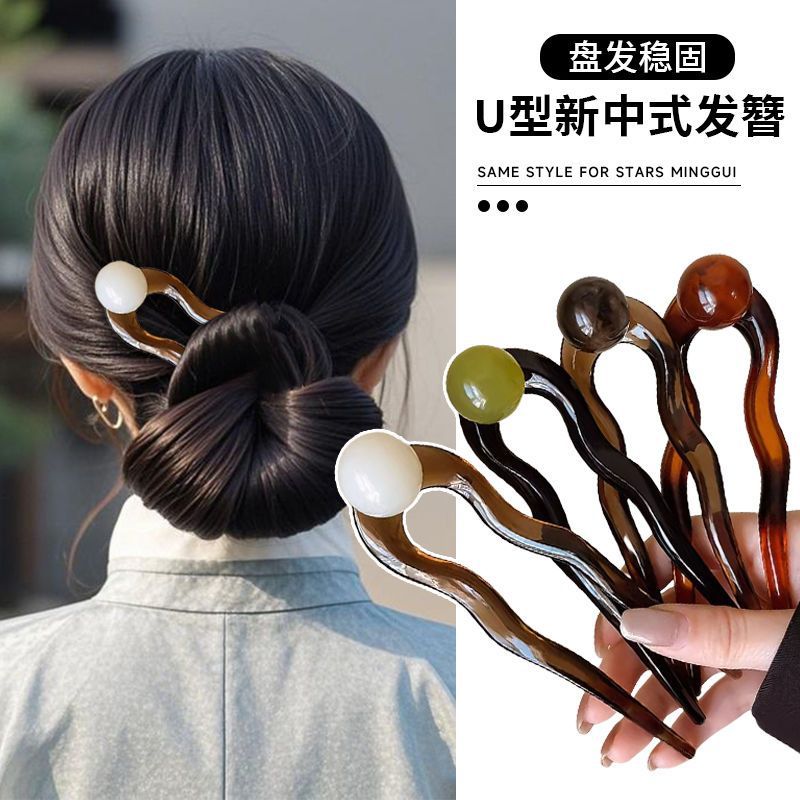 复古简约U型发簪女温柔气质丸子头盘发簪子2025新款高端发夹头饰