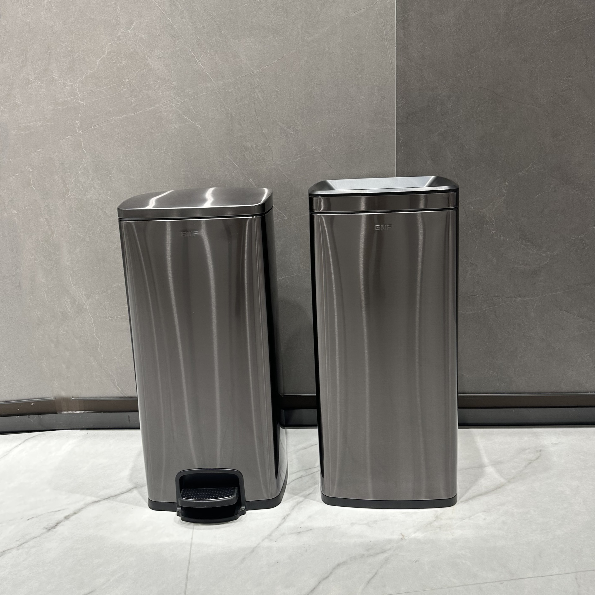 NF不锈钢双层垃圾桶商用办公室卫生间带盖大号桶50L方形擦手纸桶G