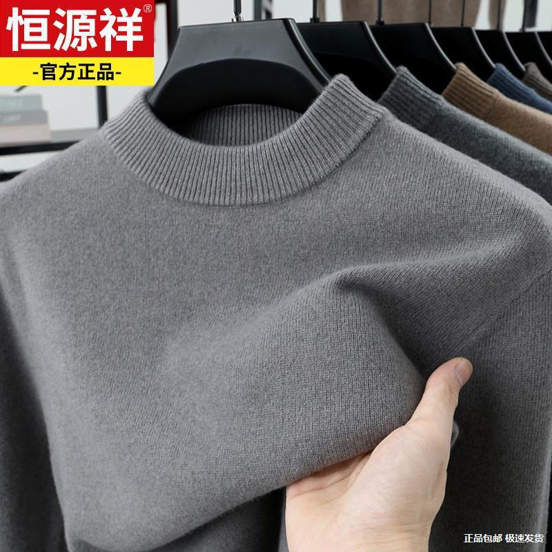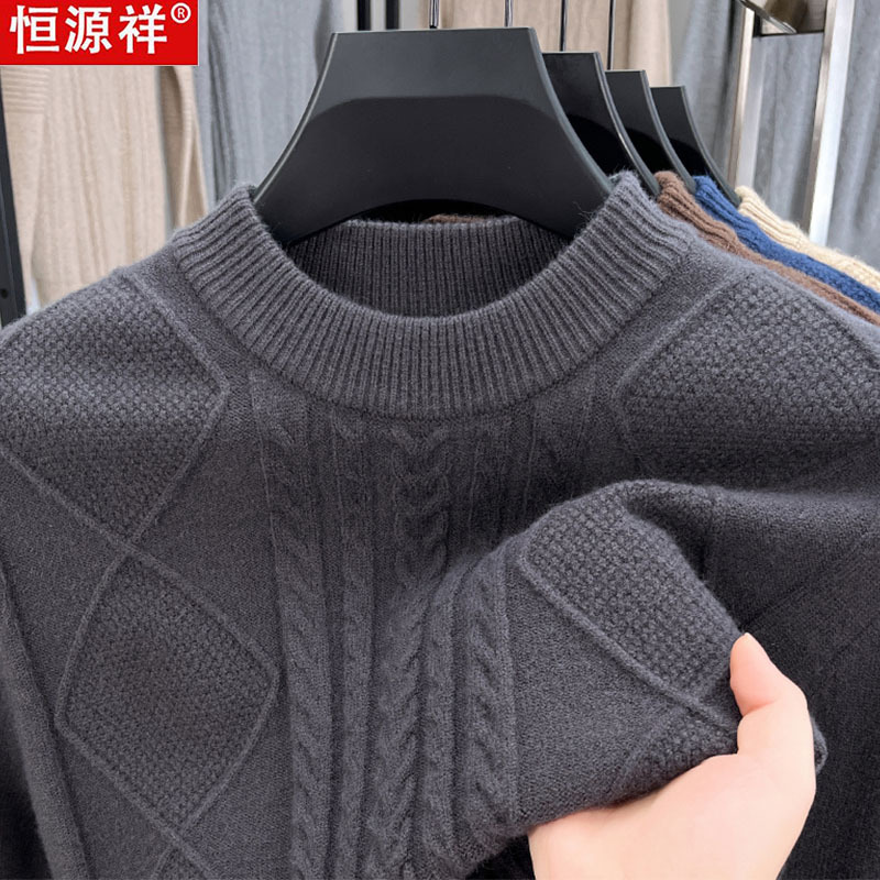 恒源祥冬季精纺羊毛衫男士加厚圆领针织打底衫中年爸爸装保暖毛衣