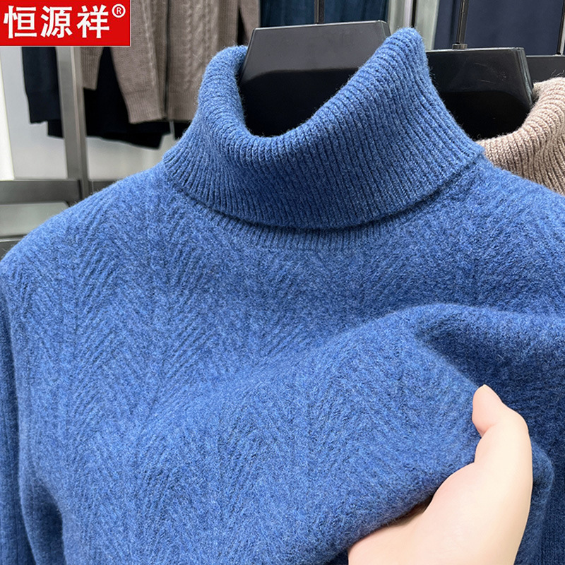 恒源祥100%羊毛衫男加厚冬季可翻高领针织衫时尚纯色套头男装毛衣