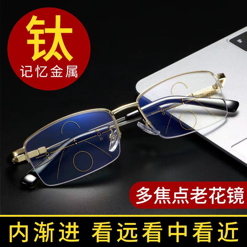 跨境变色多焦点老花镜批发智能变焦远近两用老花镜源头厂家批发