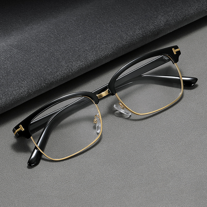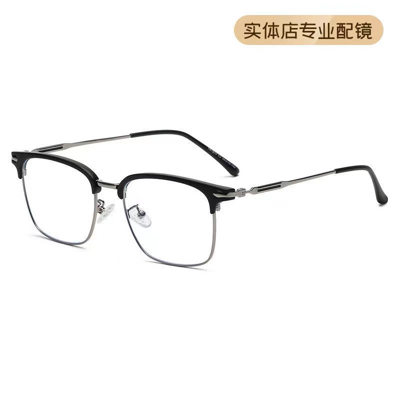 新款防蓝光平光镜时尚半框潮流复古金属眼镜架男士近视眼镜架批发