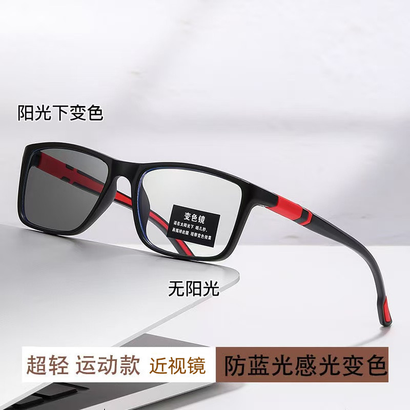 2024款变色眼镜框TR90防蓝光成品近视运动100度-400度厂 家批发