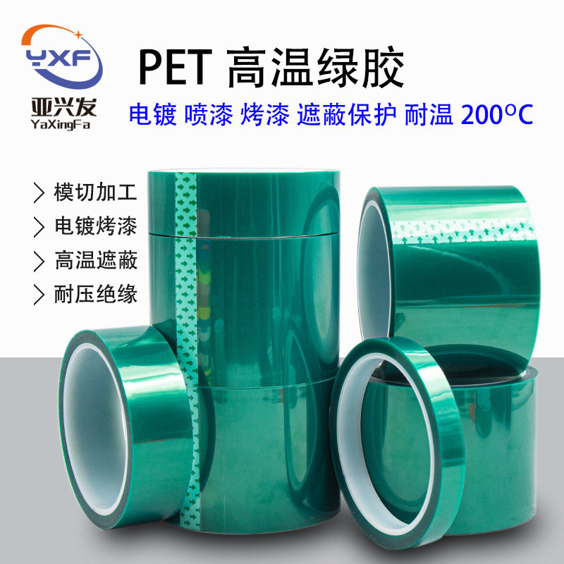 PET绝缘胶带工业耐高温绿胶喷漆遮蔽不残胶耐酸碱硅胶带批发高粘