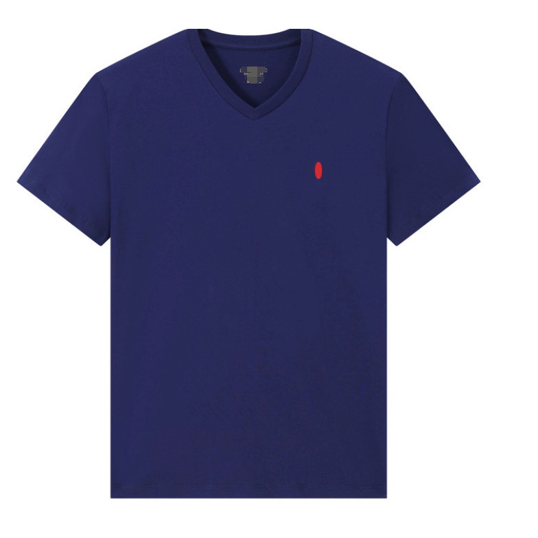 V领小马标跨境夏季男士t恤短袖修身纯棉刺绣RL上衣休闲百搭潮牌