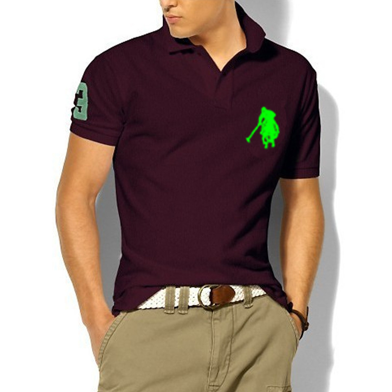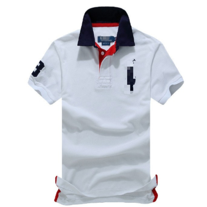 爆款大马标男式翻领刺绣纯色纯棉大码宽松短袖t恤外贸经典衫