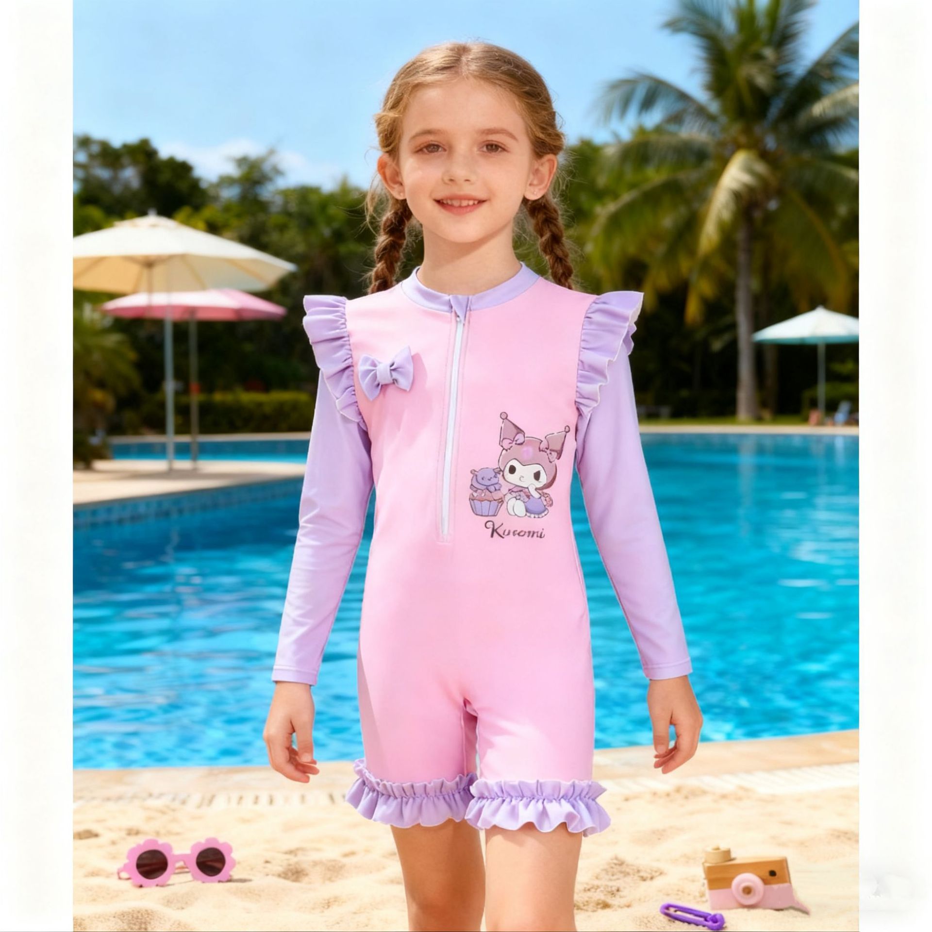跨境儿童浮力泳衣女童连体宝宝卡通库洛米泳装冲浪服女童浮力泳衣