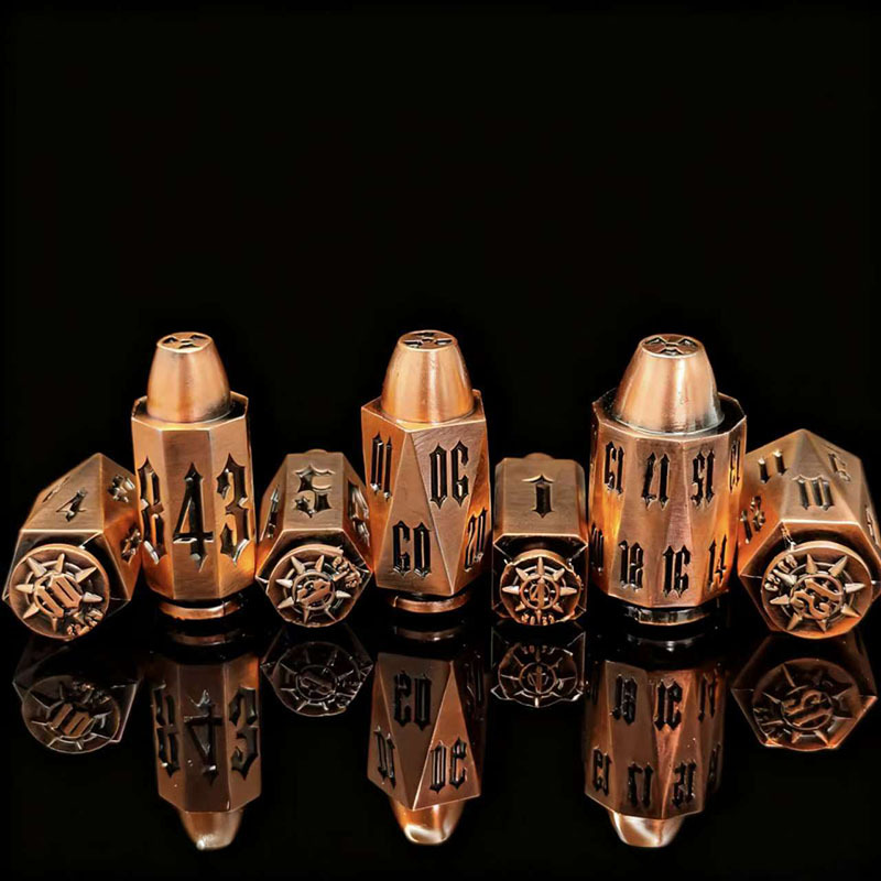 子弹金属骰子套装DND龙与地下城TRPG多面体色子COC跑团克苏鲁桌游