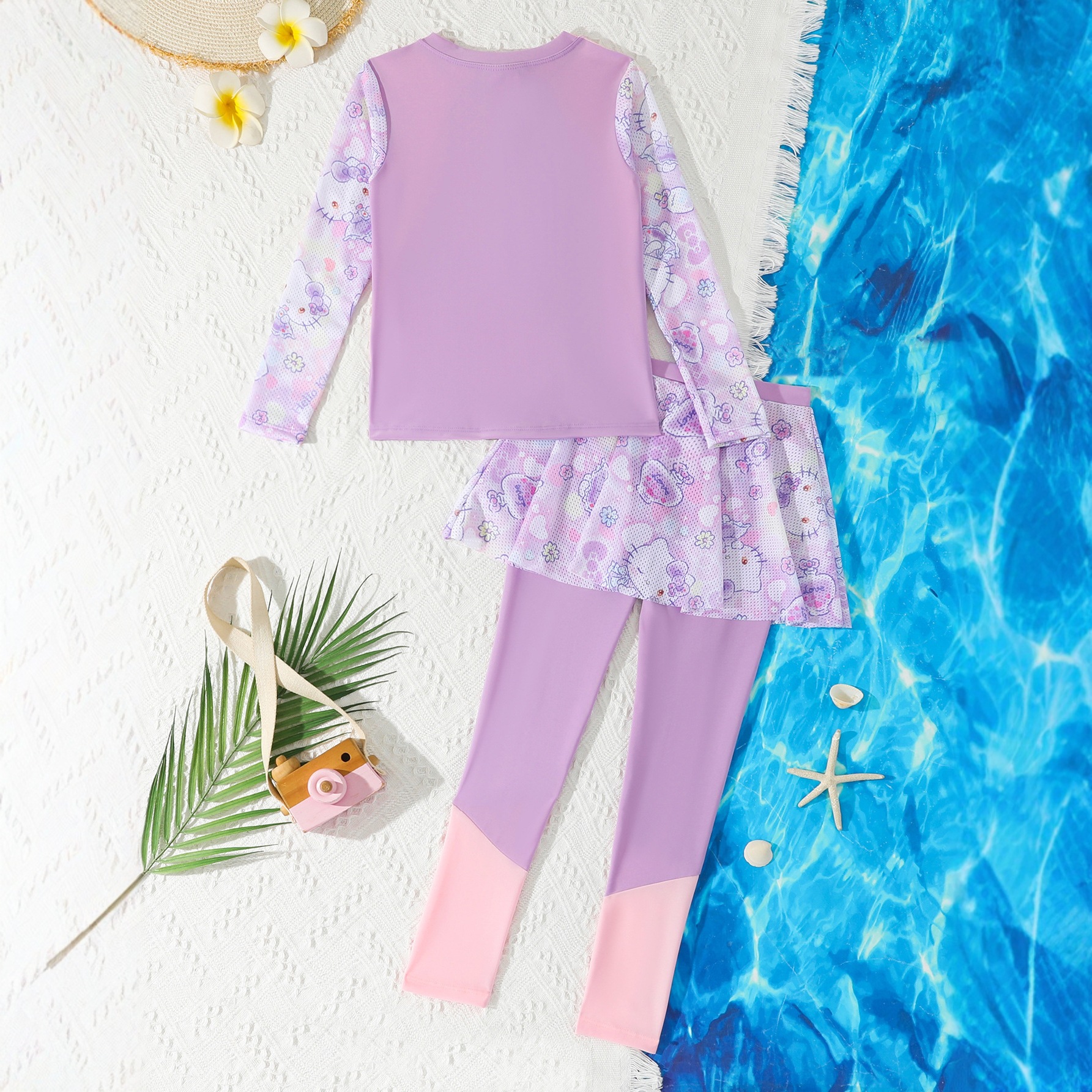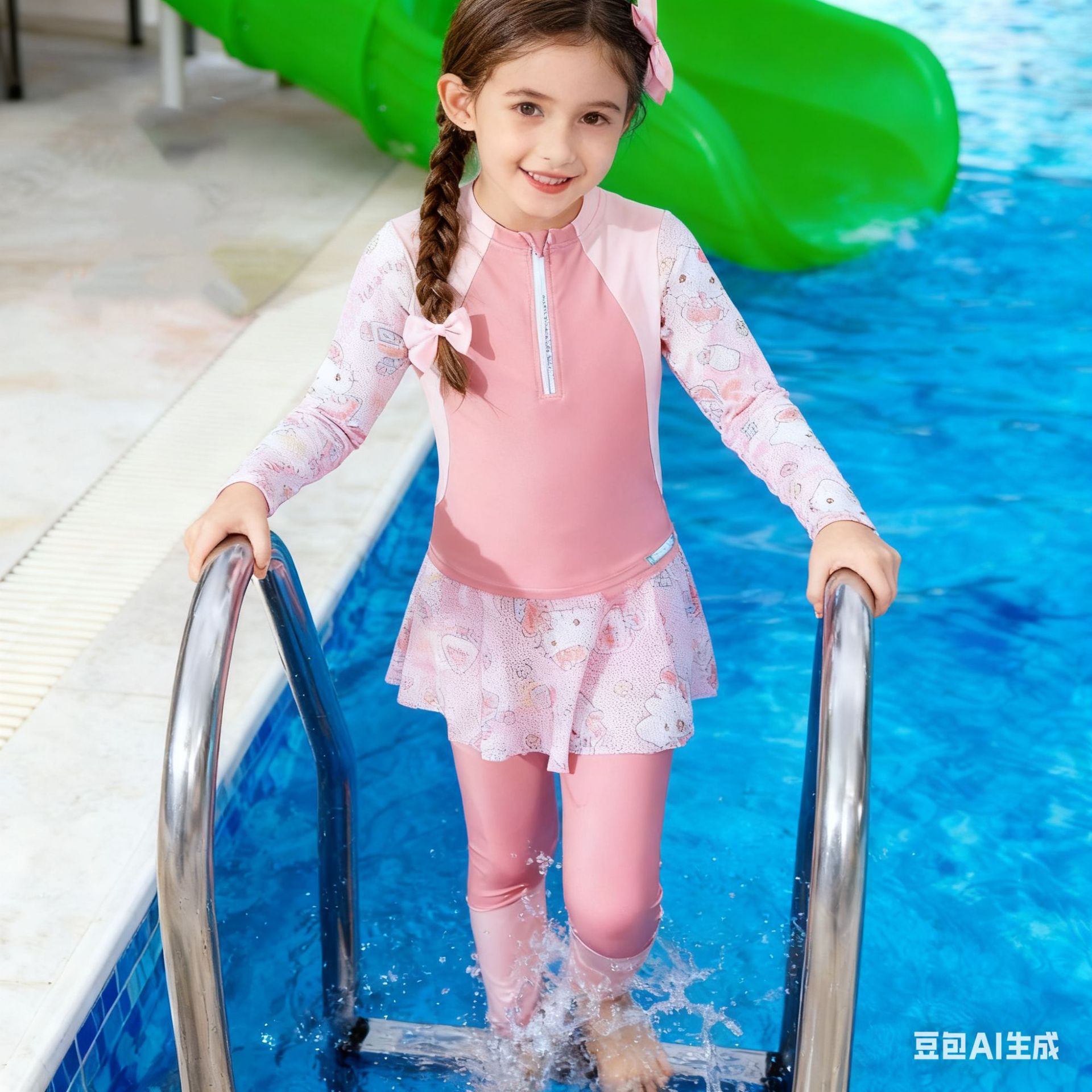 新款卡通女童分体长袖防晒儿童游泳衣甜美女孩速干泡温泉沙滩泳衣
