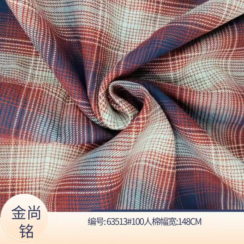新款春秋全人棉格纹衬衫时装面料 100人棉红色系列格子