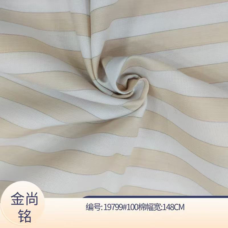 现货全棉色织杏色条纹衬衫面料 全棉条子时装布料