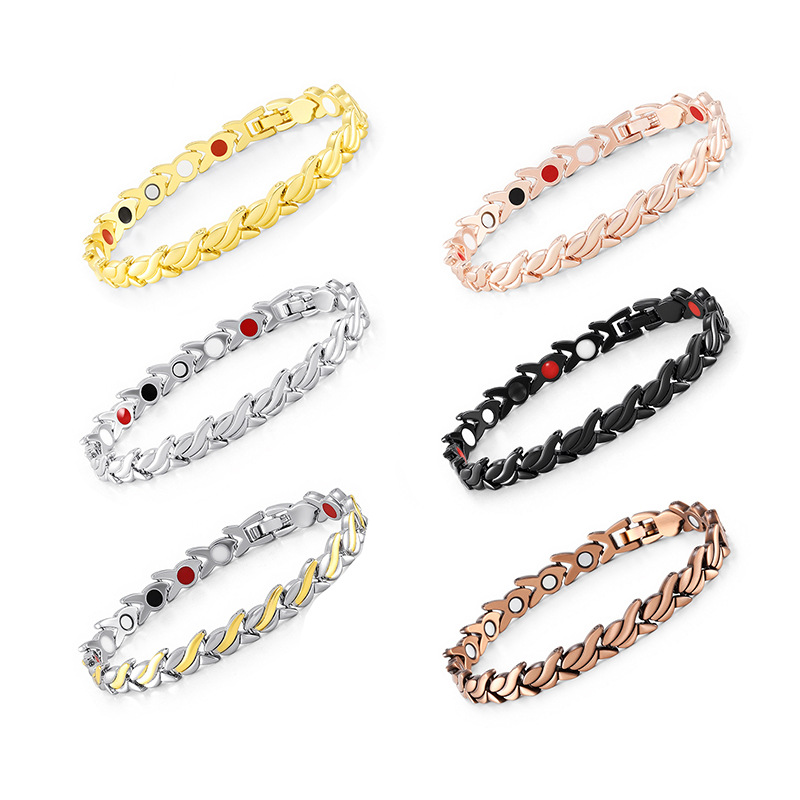 跨境小清新磁性女士手镯锌合金保色电镀男士手链波浪造型饰品批发