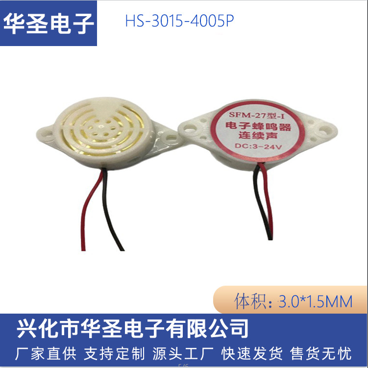 压电有源蜂鸣器 HS-3015-4005P引线蜂鸣器 3-12V连续声电子蜂鸣器
