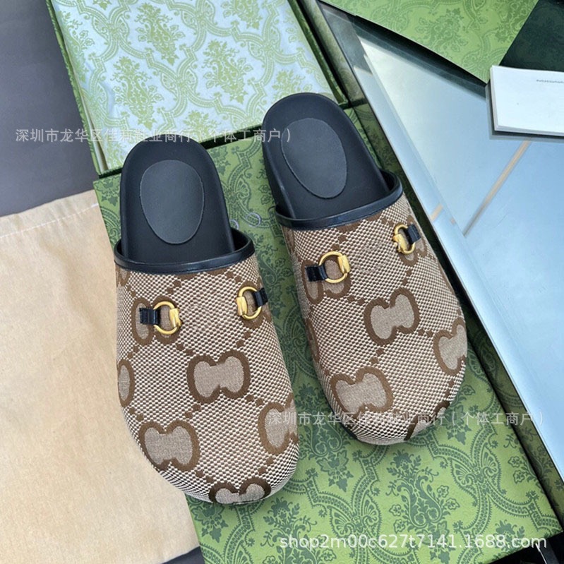 G家刺绣印花包头半拖穆勒鞋2025 年早春新款家居外穿大码博肯拖鞋