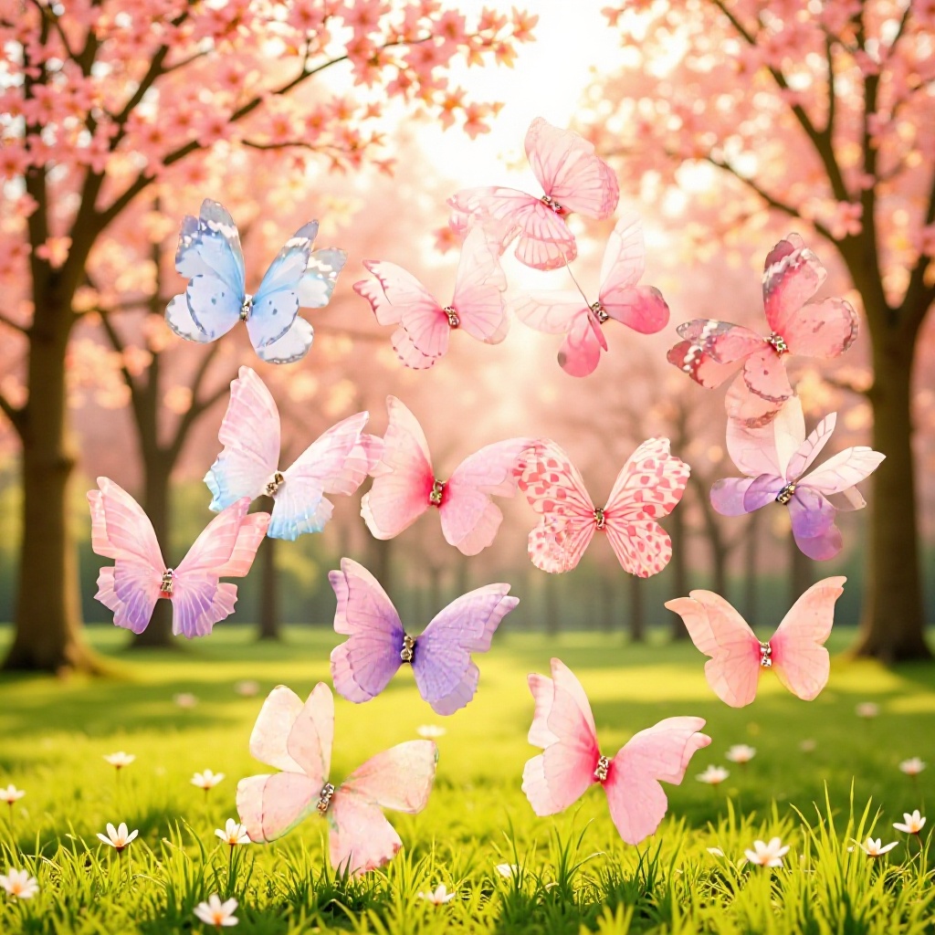 10cm双层网纱蝴蝶少女风装饰甜美小蝴蝶印花DIY手工头饰发饰配件