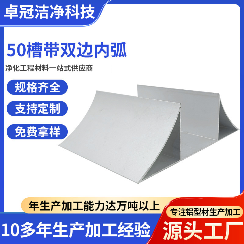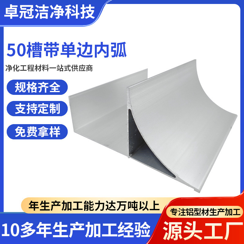 净化铝型材50单R槽带内圆弧槽铝 无尘车间彩钢板铝合金阴角槽铝