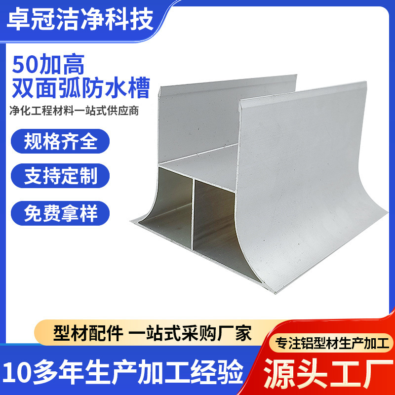 净化铝型材无尘车间铝型材50加高双面弧防水槽净化车间洁净室铝材