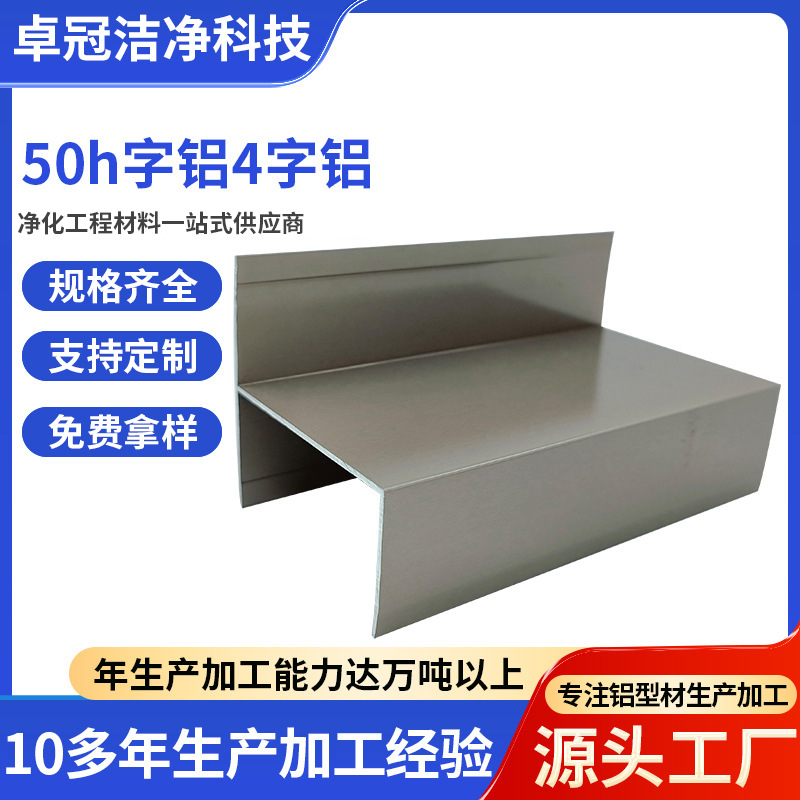 净化铝型材洁净室4字铝无尘车间彩钢板50h字铝门窗料净化铝材定制