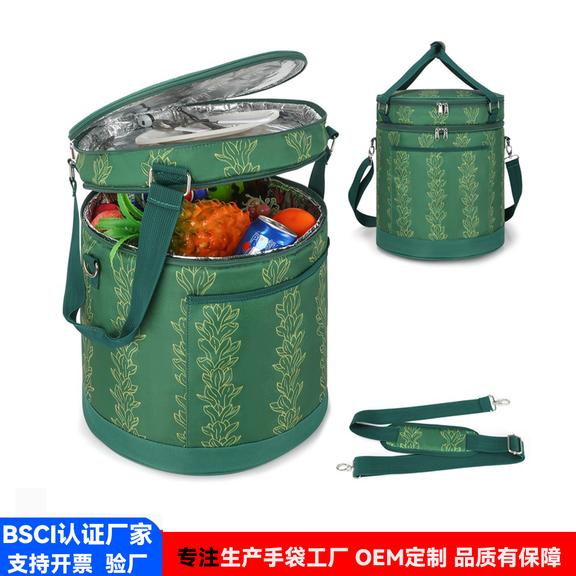 迪土尼验厂定制圆形保温包大容量保鲜冰包可折叠便携午餐保温袋