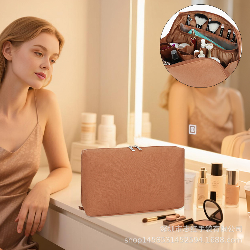 跨境抖音亚马逊帆布防水化妆包大容量手拿化妆包多功能便携化妆包