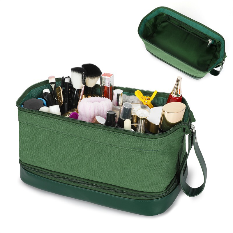 跨境防水帆布双层化妆包时尚双开口耐磨帆布旅行便携化妆洗漱包