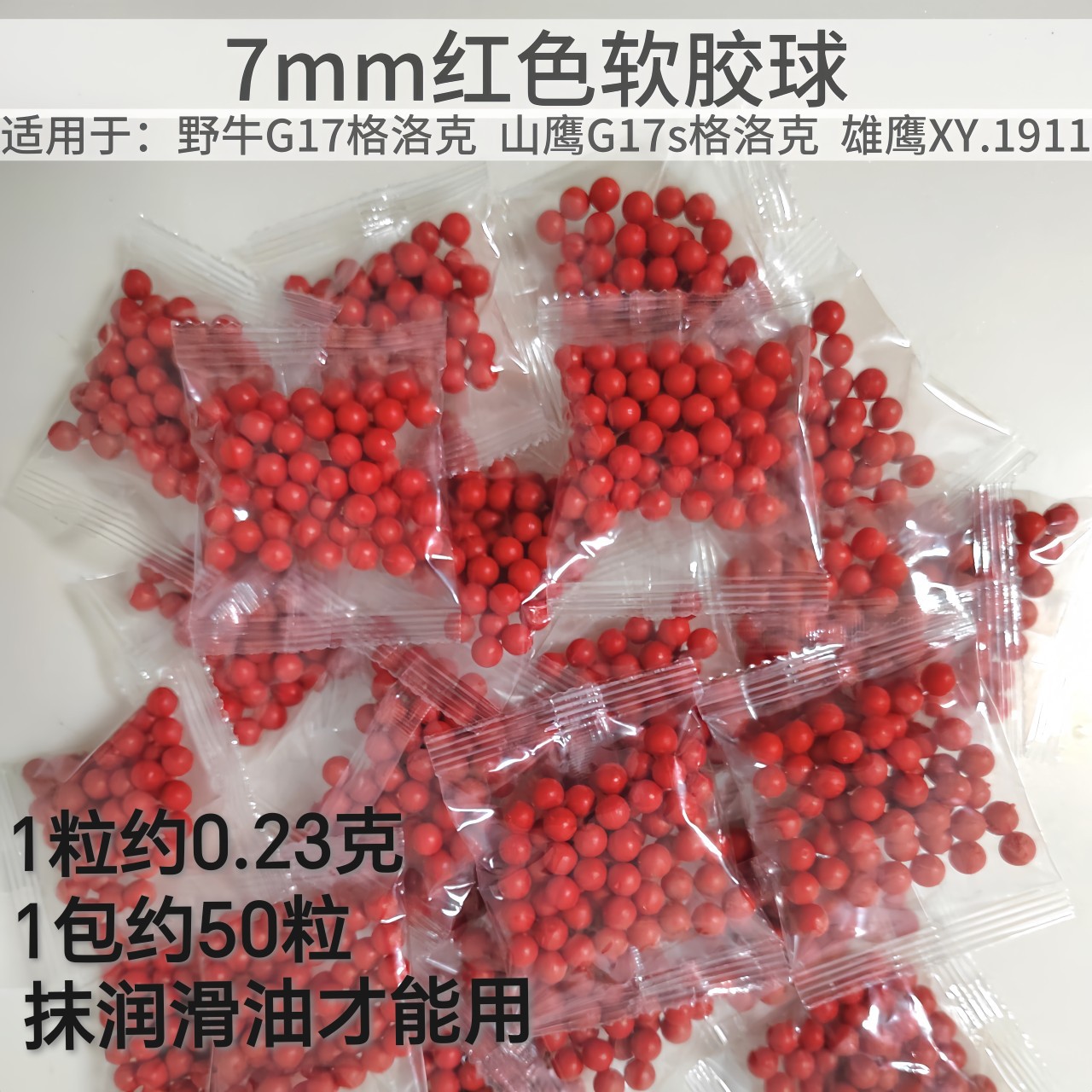 7mm软胶球子弹软弹偏硬野牛格洛克G17雄鹰1911红色pu软胶弹玩具