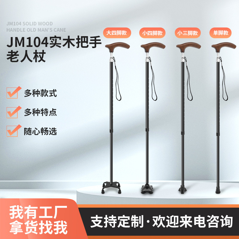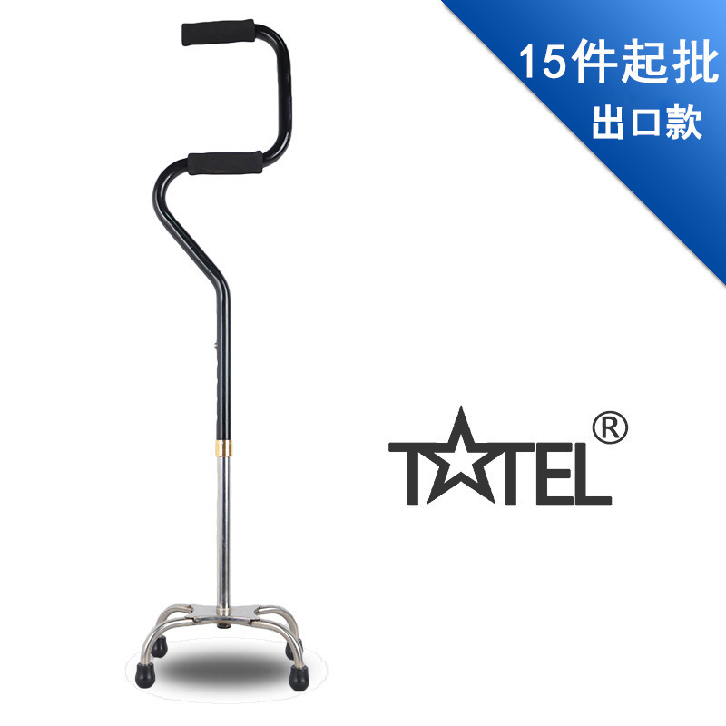 批发老人拐棍中老年人用品弓形手柄铝合金拐杖老人四角脚伸缩棍