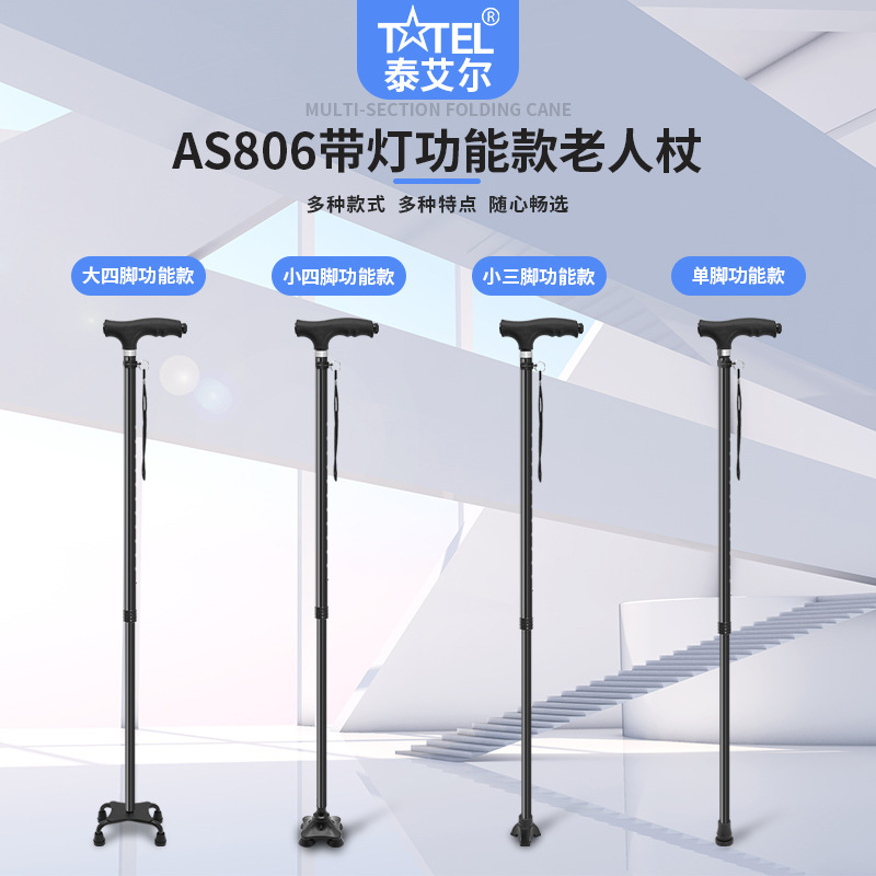 泰艾尔防滑铝合金老人手杖 手电筒功能款老人杖 折叠带灯伸缩助行