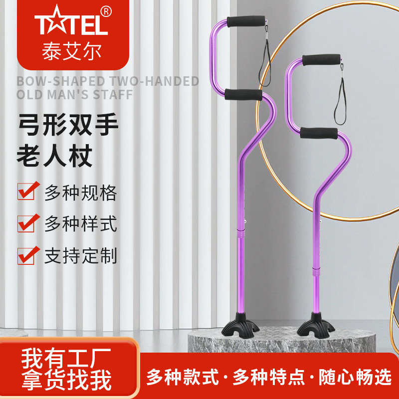 大四脚弓形双手老人杖 年人用品弓形手柄拐棍 铝合金伸缩拐杖