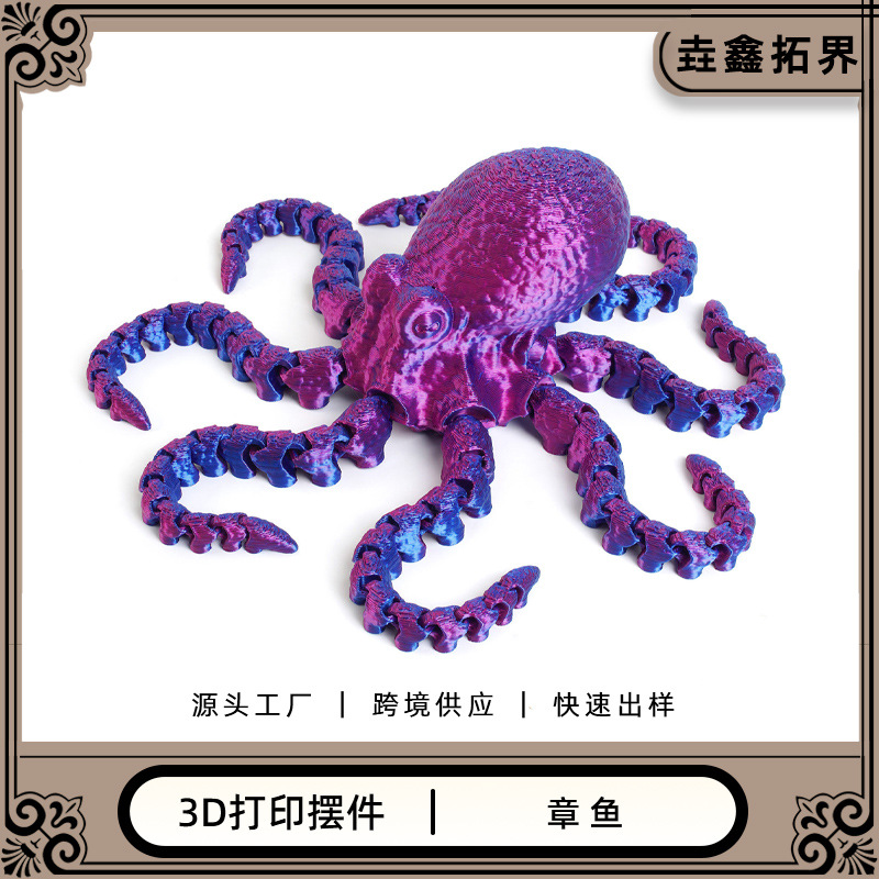 跨境3D打印玩具章鱼关节可活动鱼缸装饰乌贼小玩具3d打印手办摆件