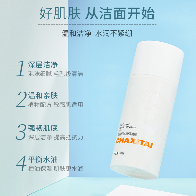 查西态蓝铜胜肽洁面凝胶温和弱酸性氨基酸洁面深层清洁护肤洗面奶