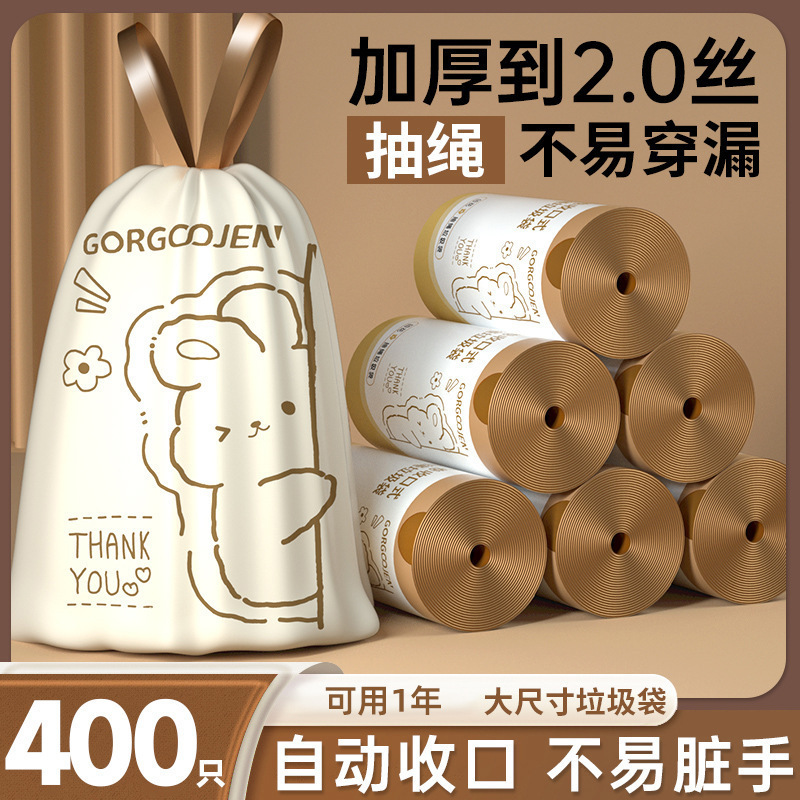 抽绳垃圾袋加厚手提式家用厨房宿舍用塑料袋小恐龙免撕清洁袋加大