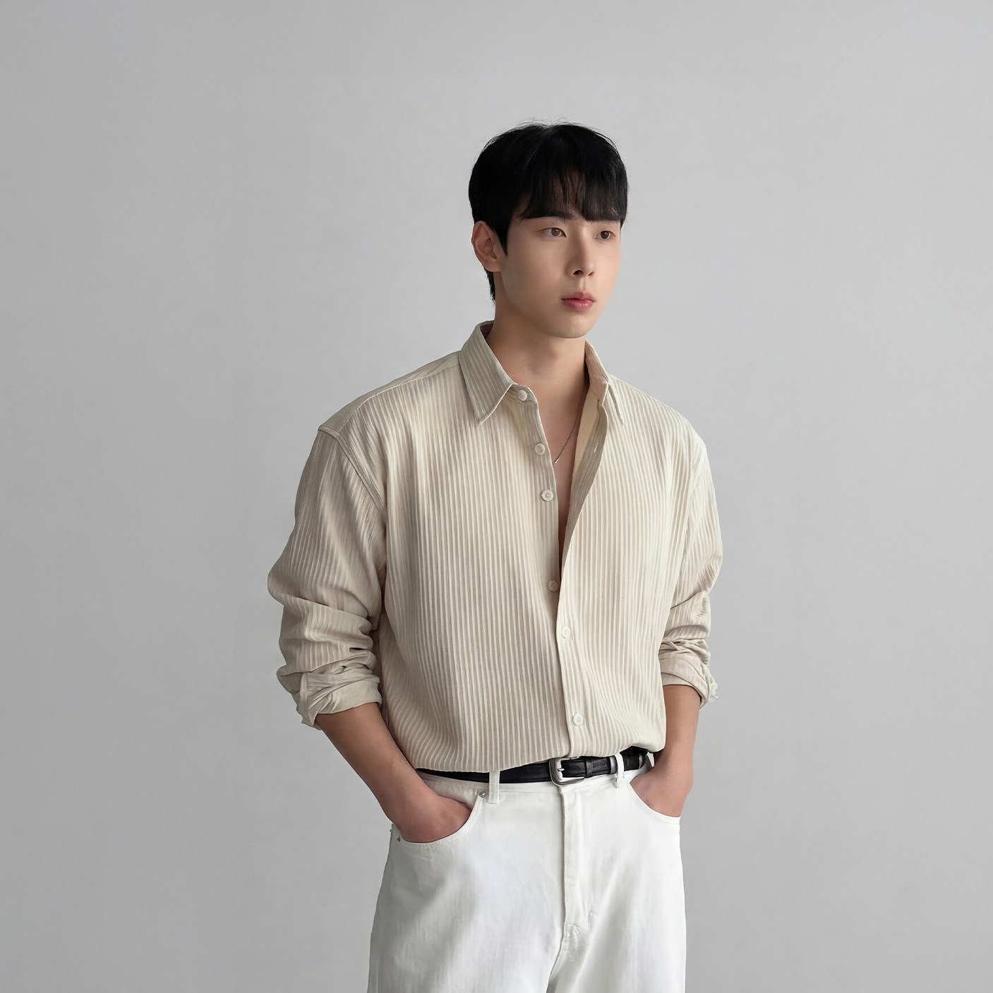 黑色肌理感长袖衬衫男春季轻熟风人夫感轻奢重磅条纹免烫商务衬衣